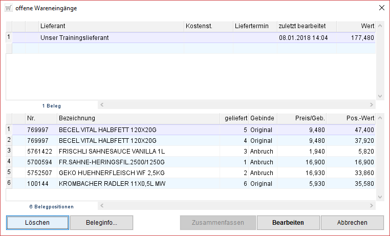 Wollen Sie einen ungebuchten Wareneingang löschen, nutzen Sie die gleichnamige Schaltfläche.
