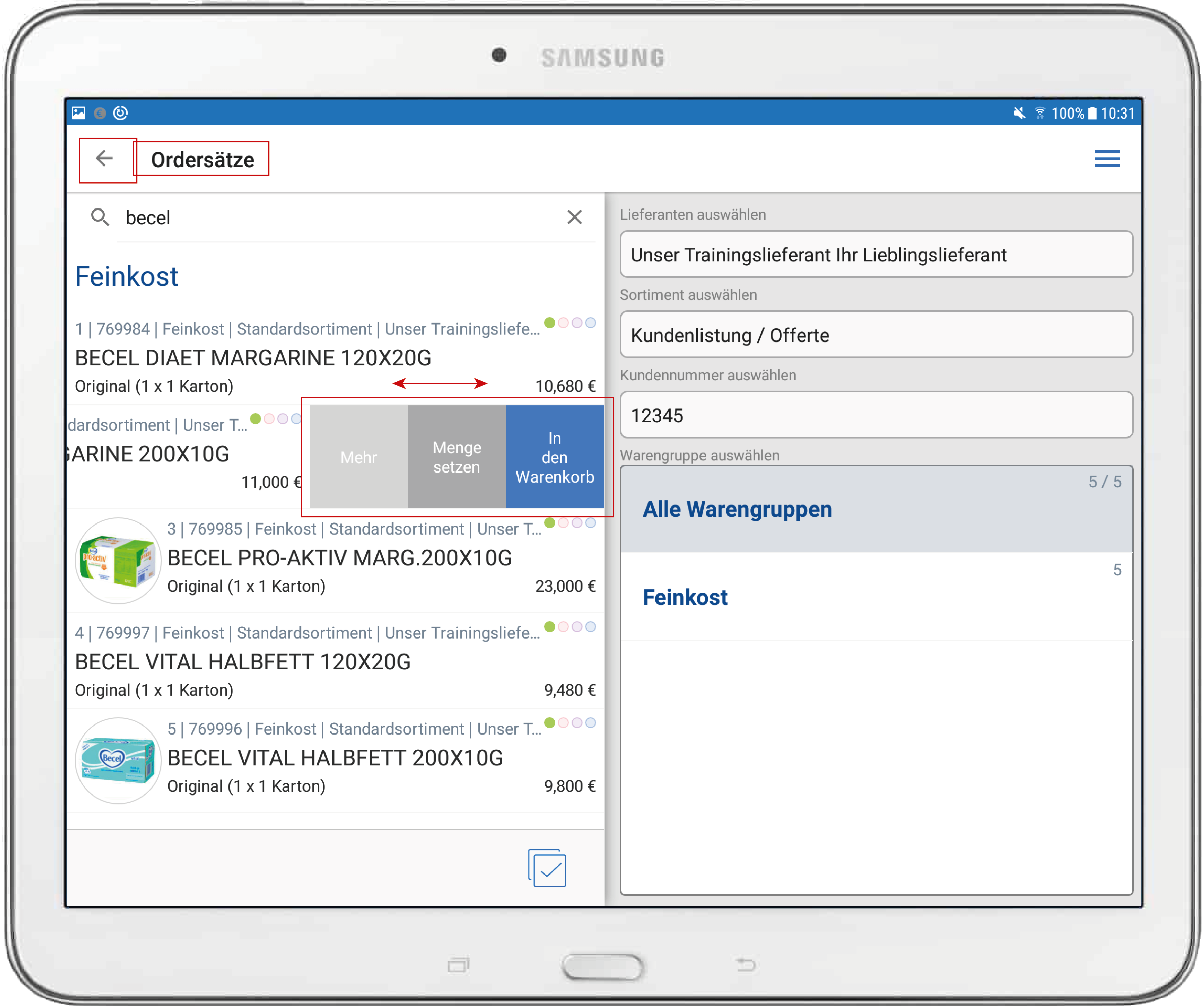 Beinhaltet ein Sortiment weniger als 1000 Artikel, wird die Liste bereits warengruppensortiert angezeigt, das bedeutet, dass Ihnen die Warengruppen in der